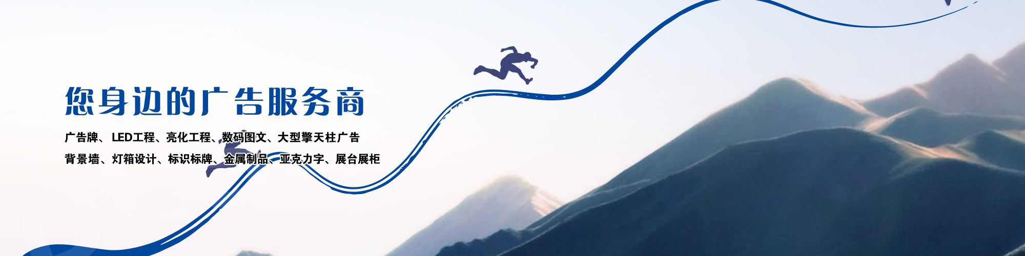 葫蘆島市云峰廣告裝飾有限公司自創(chuàng)立以來,一直致力于廣告牌的設(shè)計,噴繪,制作,安裝、LED工程、亮化工程、數(shù)碼圖文、圍擋制作安裝、三面翻廣告、大型擎天柱廣告、草坪牌、指示牌、雕刻背景墻、燈箱設(shè)計、標識標牌、金屬制品、亞克力字、展臺展柜、取款機隔斷、取款機隔斷等一體化服務(wù),是葫蘆島市噴繪行業(yè)大規(guī)模實業(yè)公司。